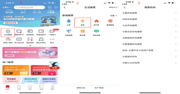 打开云闪付APP的“生活缴费”专区,可以看到“电费”“燃气费”“有线电视”等应用,选择对应的应用,即可看到是否有欠缴信息,并可根据个人需求输入相应的缴费金额,通过绑定银行卡完成支付。以电费为例,操作流程为: