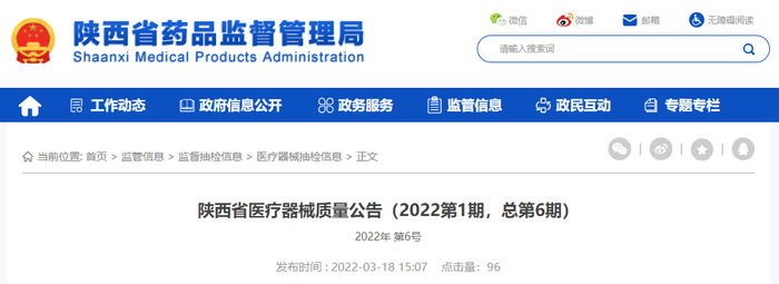 中国质量新闻网讯 近日,陕西省药品监督管理局发布陕西省医疗器械质量公告(2022第1期,总第6期)。据公告,标示富朗医疗器械有限公司生产的医用外科口罩上不合格名单。
