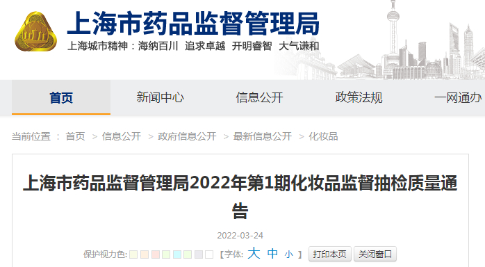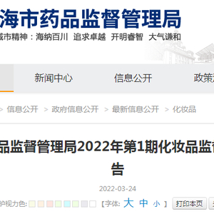 中国质量新闻网讯 2022年3月24日,上海市药品监督管理局网站发布2022年第1期化妆品监督抽检质量通告。据通告,该局组织对上海市化妆品生产经营企业实施了质量监督抽检。本期对15批次不合格化妆品进行通告。