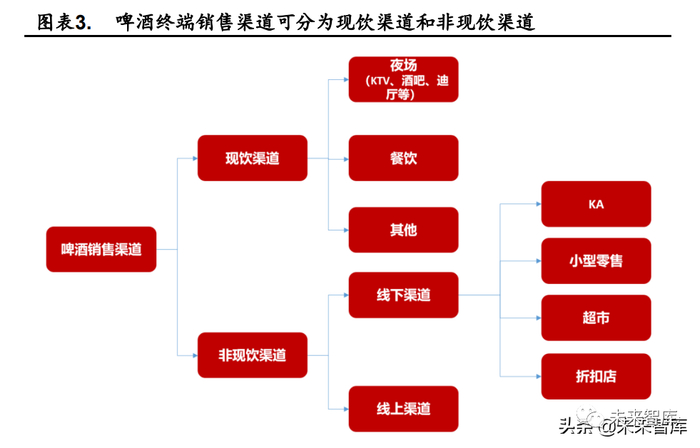 2020 年 1 月,新冠疫情在全国爆发,致使现饮渠道受到巨大冲击。我国啤酒终端销售渠道可分为现饮渠道和非现饮渠道,其中现饮渠道包括夜 场、餐饮等,非现饮渠道包括 KA 和零售店等。根据 Euromonitor 的数据, 我国现饮渠道和非现饮渠道占比常年保持稳定,疫情前(2019 年)现饮渠 道占比为 51.40%,非现饮渠道占比 48.60%(按销量),现饮渠道 2020 年下 跌至 48.0%(按销量),同比下滑 3.4pct。