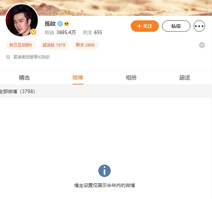 陈欧微博停更超半年 主业聚美优品市场份额消失殆尽