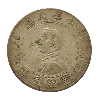 我收藏着一枚“中华民国开国纪念币”,正面中央镌孙中山侧面肖像,外围双圈 (内一线圈,外珠点圈),左右长枝花饰,边缘上下镌有中文隶书“中华民国开国纪念币”。背面中央为中文隶书“壹圆”,边缘英文“中华民国”“壹圆”,左右上方分列六角星。该版纪念币俗称“小头”,直径3.8cm,重27克。