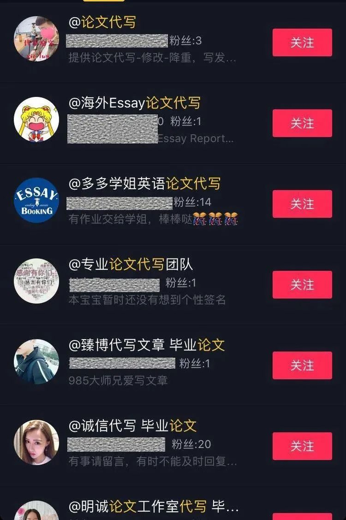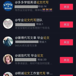 这些管理着众多写手的中介团队往往成规模地散布在电商平台、社交平台以及各大校园群中。通常,他们会用一些专业名称显示其专业性,如“某某教育”“某某科技有限公司”“某某工作室”等。