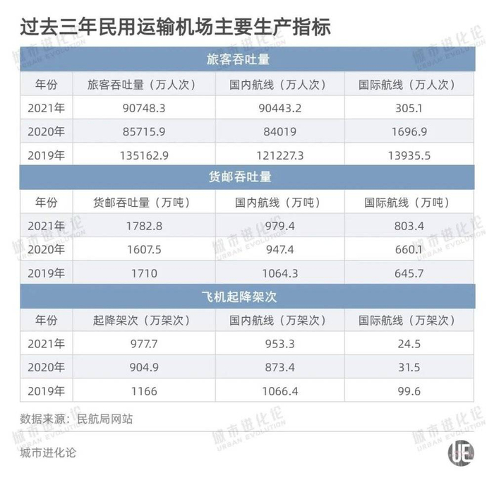 过去,每当这个系列的公报公布,迎合“吞吐量情结”,国内众多机场排行榜也就顺势出炉。疫情之下的吞吐量排名,则更像是复盘各地的恢复情况。从“旅客吞吐量、货邮吞吐量、起降架次”三项核心指标,也能看见地区经济的韧性。