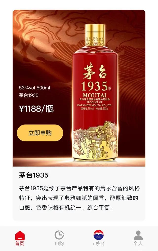 据媒体发布的茅台新电商平台购酒界面显示,茅台1935在茅台新电商规划的销售产品之列,并以官方指导价1188元/瓶进行销售。