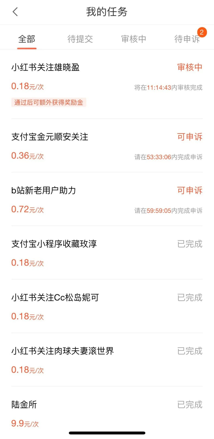 谷煜提供给记者的截图显示,这些任务虽然酬劳很低,但只需动动手指即可完成,例如在小红书上关注一些用户、b站新老用户助力等。