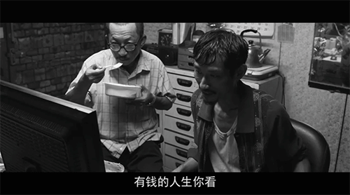 说到对于金钱的向往,也属人之常情,对于身处社会底层的人物来说更是理所应当,但这两位小人物——菜埔和肚财对于金钱的向往,在电影中倒更像是对于异域的好奇。观看有钱人的生活,对他们来说犹如观看动物园里的动物。其中情绪最为浓郁的一处,也无非是肚财脱口而出的那句:“有钱人的生活你看,果然是彩色的。”——若是说这样的情景给了这两位什么刺激或是激励,那是没有的。
