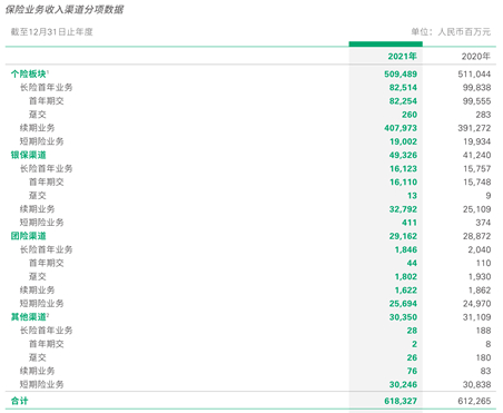 按渠道划分,则2021年度,中国人寿个险板块保险业务收入微降0.3%,银保渠道、团险渠道收入有所上升。