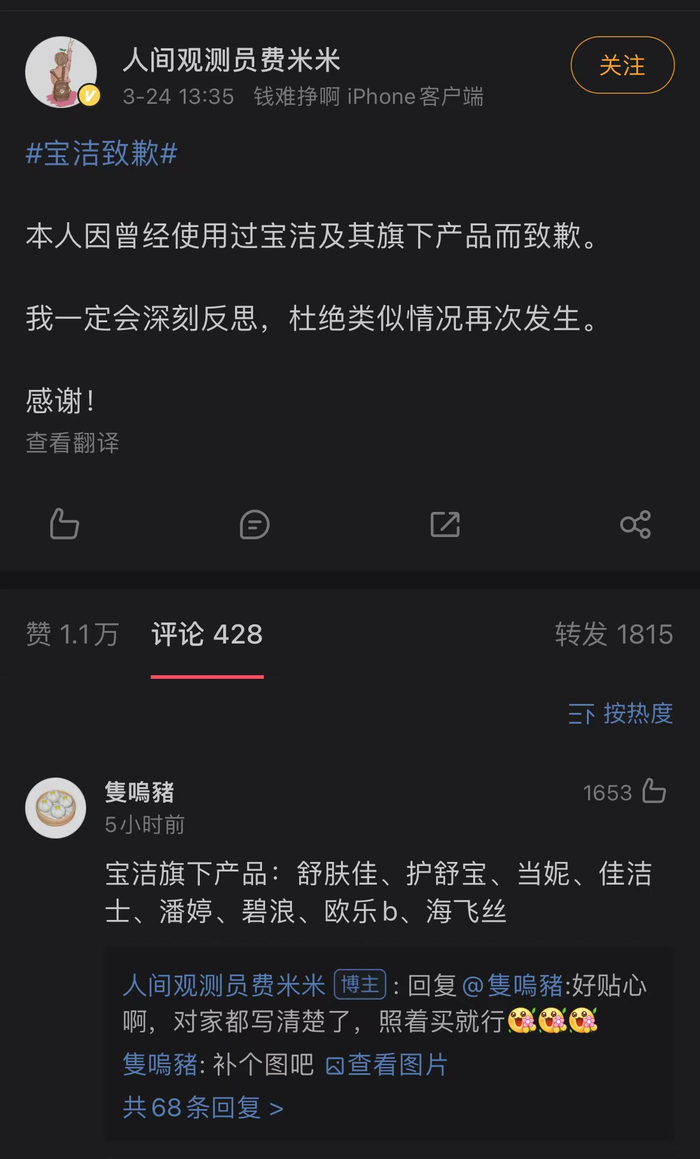 宝洁公众号推文被指“侮辱女性”,旗下产品遭部分消费者抵制