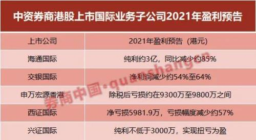 从此前已发布去年盈利预告的5家中资券商看,海通国际(港股00665)和交银国际两家体量较大的公司均表示利润下滑超过50%,而申万宏源香港(港股00218)、西证国际则双双亏损,只兴证国际(港股06058)实现扭亏为盈,预计纯利约3000万港元。