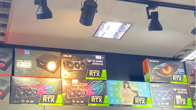 显卡如今跌了多少了?证券时报记者来到“华强电子世界”,多家档口都摆着热门显卡的盒子。