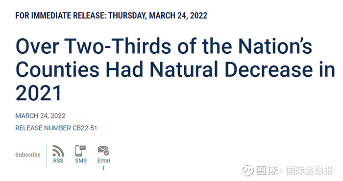 3月24日,美国人口普查局最新公布的报告显示,2021年,美国有近75%的县(2297个县)出现了人口减少的问题,高于2019年的45.5%和2020年的55.5%。