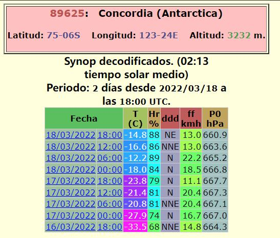康科迪亚站3月16日到18日的气温纪录(第三列即为气温,单位℃)