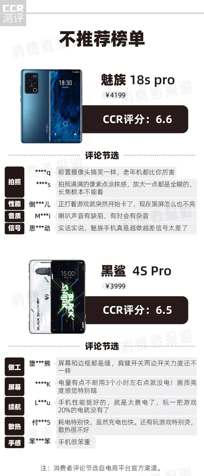 (2)不推荐魅族 18s pro、黑鲨 4S Pro。