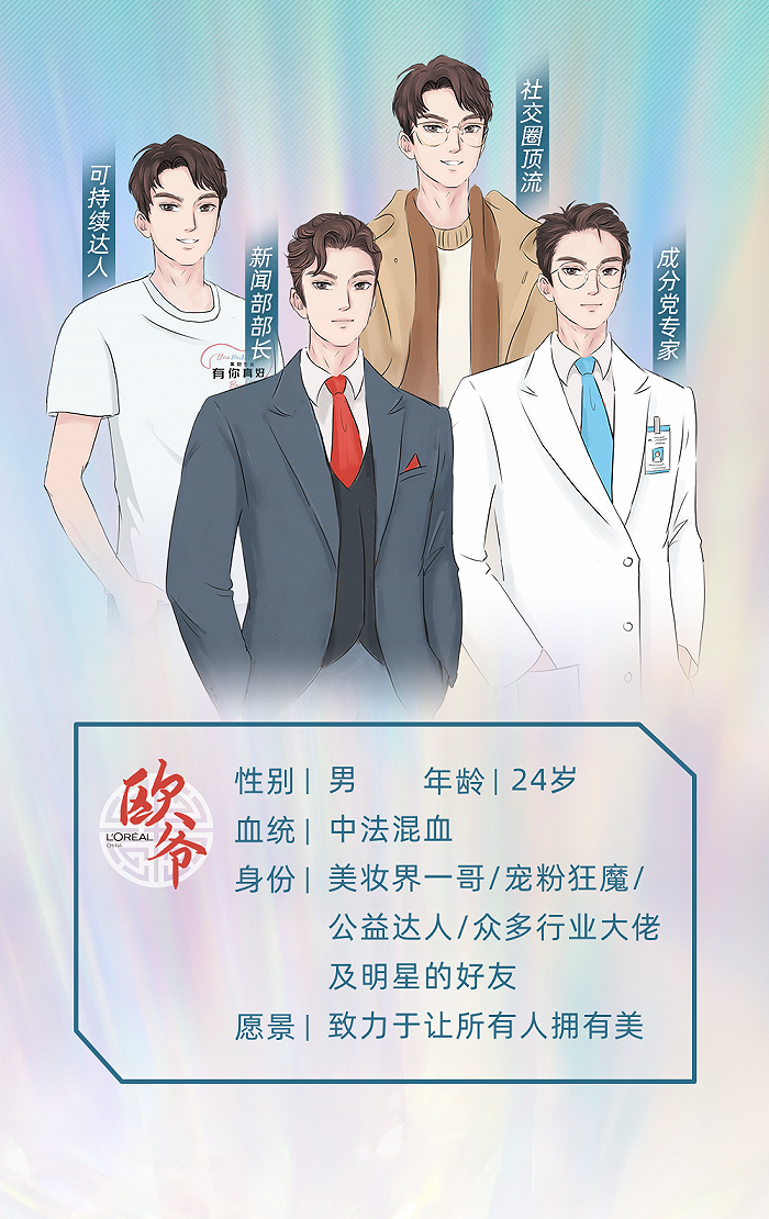 “M姐”之后,去年3月,欧莱雅还上线了首个有中国血统的虚拟偶像“欧爷”作为品牌代言人,其年龄设定 24 岁,中法混血,有美妆一哥、宠粉狂魔、公益达人等身份标签,愿景是致力于让所有人拥有美。