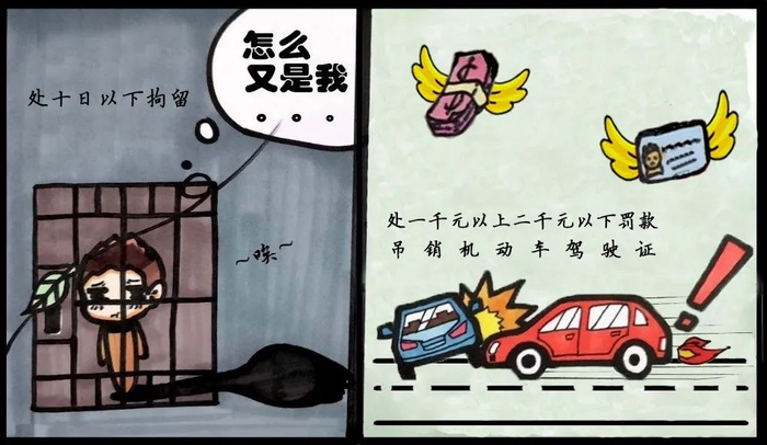根据情节不同,行为人除了要受到暂扣或吊销驾驶证、罚款、拘留等处罚外,严重的还要被追究刑事责任,失去人身自由。