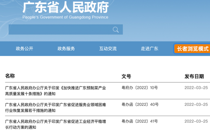同一天,广东省政府办公厅印发实施《广东省促进服务业领域困难行业恢复发展若干措施》(简称“《广东措施》”)、《广东省促进工业经济平稳增长行动方案》(简称“《稳增长方案》”)、《加快推进广东预制菜产业高质量发展十条措施》3条通知,希望以此帮助广东省服务业领域困难行业渡过难关、恢复发展。