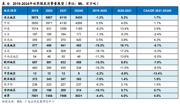 4. 未来世界煤炭需求增长主要来自亚太地区,欧美去煤化进程预期放缓
