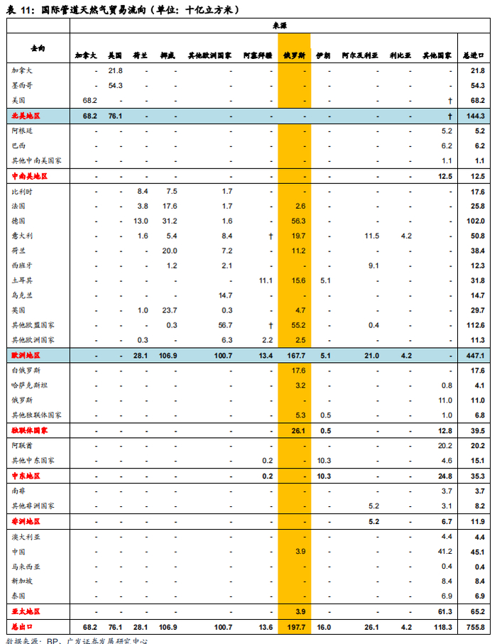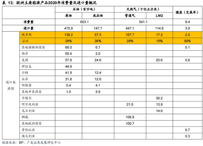 1. 天然气:俄罗斯是世界天然气贸易市场最大的供给方,俄气占欧洲国家进口比重达33%