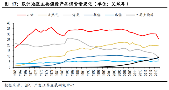 1. 近20年来欧洲新能源发展较快,但化石能源消费占比仍在70%以上
