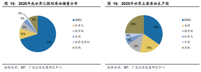 资源储量方面,根据BP数据,截至2020年底,俄罗斯已探明原油储量1078亿桶,占世界总储量的6.2%,排在除欧佩克组织成员国外的第2位,仅次于加拿大。
