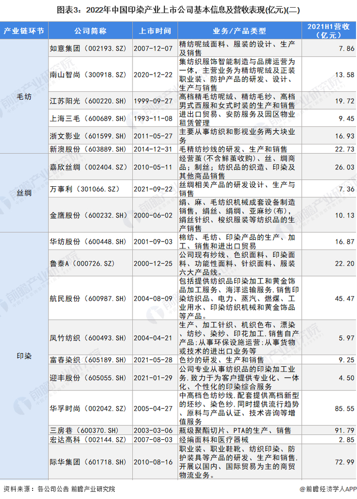 【最全】2022年印染行业上市公司全方位对比(附业务布局汇总、业绩对比、业务规划等)