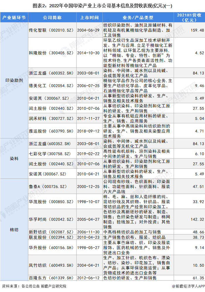 1、印染产业上市公司汇总