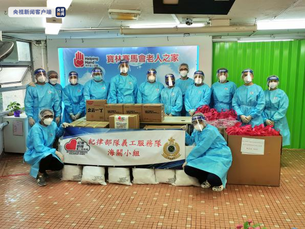 香港纪律部队义工服务队(海关小组)26日前往将军澳“伸手助人协会老人之家”,为老人们派发福袋及抗疫物资。