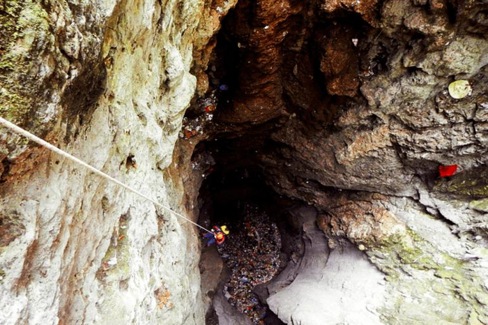 洞穴底部垃圾成堆,图片源自网络。