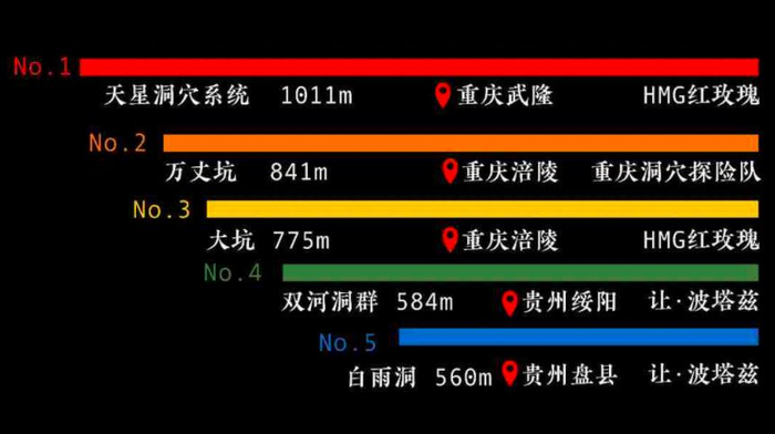 中国洞穴深度排行榜,图片源自网络。