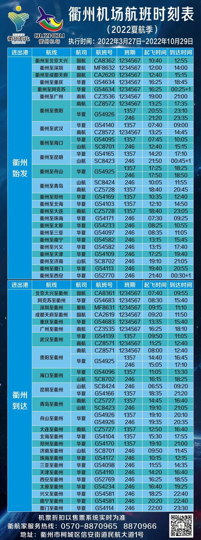 新增新疆阿克苏、贵州兴义航点!衢州机场夏航季航班时刻表来咯~