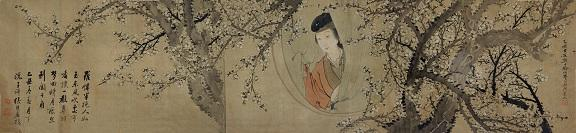 遴选出馆藏清代以来仕女画23件。画面构图或取庭园一角,或状闺阁之内,或在芳草之地,或行山水之间;配之以梧竹蕉石之景,点缀春柳与梅花之属;或对镜梳妆、或观梅赏月、或嬉戏、或女红、或采菱……铅华之饰,粉泽之态,不一而足,也有取历史故事立意者。