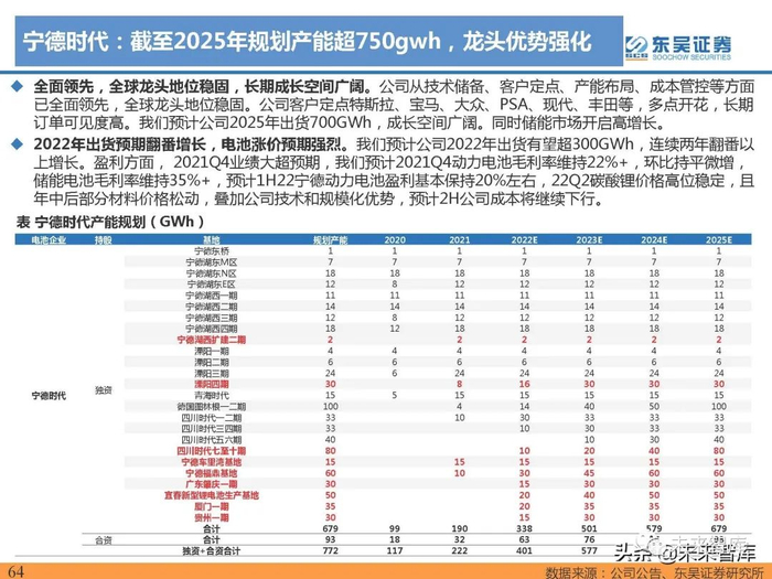 2021全年产量63万吨,同比高增112%。 2021H1三元前驱体产量28.82万吨,2021H2三元前驱体总产 量为33.69万吨,全年产量62.51万吨,同比上升111.8%,出货量继续保持高增态势。