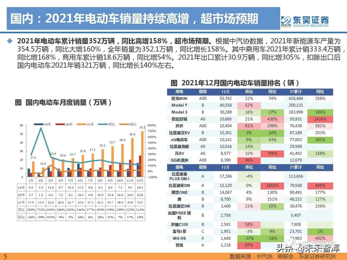 国内:2021年电动车销量持续高增,超市场预期
