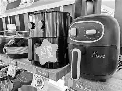 记者留意到,这些产品的价格从200多元到1000元不等。“现在四五升大小的空气炸锅价格在两三百元,煎炸炒几乎都可以做。年轻人喜欢的鸡翅、鸡块,放进去就不用怎么管了,很方便。”工作人员表示,“门店销量好的时候,一天有几十台的量。不过,网上直播间卖得更多,据我们所知,很多品牌一场直播能卖掉好几百台。”