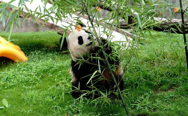上海野生动物园的大熊猫“七七”。来源:新华社