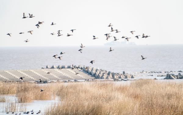 在南汇东滩过冬的鸟禽。孟雨涵 摄