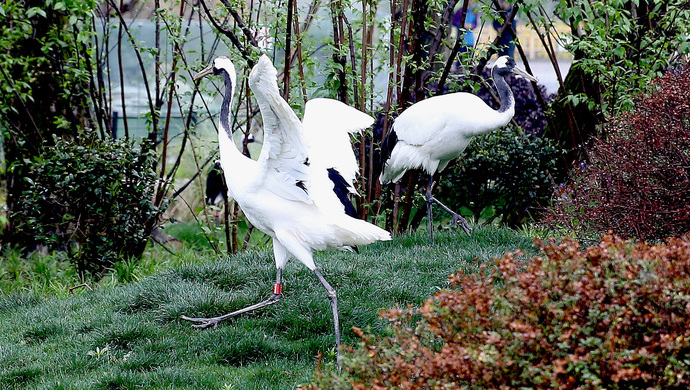 题图为上海动物园乡土动物区的丹顶鹤在林中起舞。邵剑平 摄