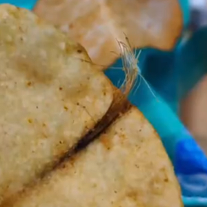 据报道,近日,齐女士在联华超市上海浦新店购买了三包乐事薯片,在吃薯片时发现带有一撮莫名毛发的薯片。