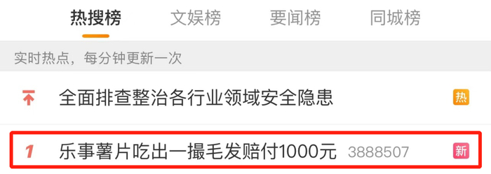 3月27日,#乐事薯片吃出一撮毛发赔付1000元# 登上微博热搜。
