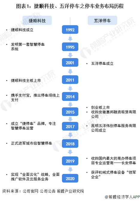 1、捷顺科技VS五洋停车:智慧停车业务布局历程