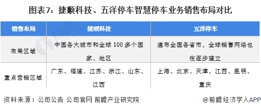 从布局区域上,二者差异不大,主要业务仍在境内开展,境外布局均处于初级阶段;从重点营销区域来看,捷顺科技由广东出发,逐步扩散至周边省市,当前业务重点仍在南方区域,而五洋停车重点区域囊括南北方重点城市。