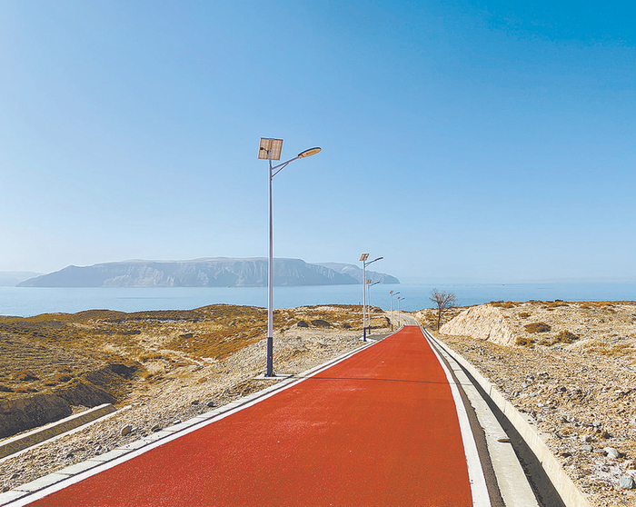 随后,记者来到位于龙羊新村的红色慢行路。沿着这条慢行路,可以通向波光粼粼的龙羊湖,红色的慢行路在蓝天与湖水的映衬中,格外显眼。