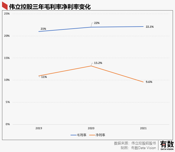 而本文的主角——伟立控股就坐落在东边的黄冈市。就伟立控股的招股书来看,2019-2021年的营收分别是3.13亿,3.18亿以及3.7亿,三年增速最低1.6%,最高16%,从未出现大幅波动,9.6%的净利率也足以笑傲造纸业。