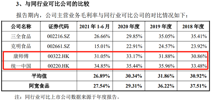 2021年上半年,阿宽食品毛利率仅为27.54%,同期公司期间费用率也达到22.95%,其中销售费用率13.91%,达到8251.77万,这里面又有5152.97万为推广服务费,其中电商渠道服务费3517.32万。