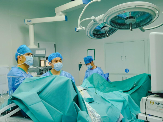 于是,运动医学科张新涛主任带领团队为刘先生开展了右髋关节镜微创手术,磨除骨赘,修复盂唇。术后第一天,患者即可扶拐下地,运动康复师跟进,予以康复指导及功能锻炼。“目前,髋关节镜采用微创技术,切口小、手术时间短、术中出血少,保留了髋关节的功能等优势,加上围手术期快速康复管理,减少未来髋关节骨关节炎和关节置换手术的概率,目前已成为治疗FAI及盂唇损伤的主要手术方式”,张新涛主任说。北大深圳医院运动医学科髋关节亚专业组由科室主任张新涛教授、陈鹏博士及钟非运动康复师组成,可提供手术-康复一体化模式,为患者康复及重返运动提供团队保障。