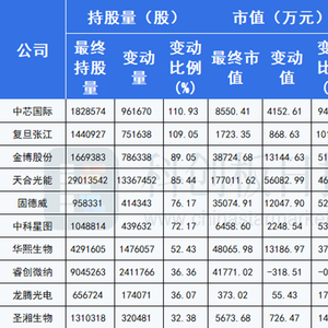 论板块,“光伏”最受青睐,前五大个股中,三家公司属于光伏板块,分别为金博股份、天合光能、固德威。论个股,本月被北向资金加仓最多的是中芯国际,加仓比例高达110%;其次是复旦张江,被加仓109%。3月25日,天合光能和中芯国际的北向资金持股量均创新高。