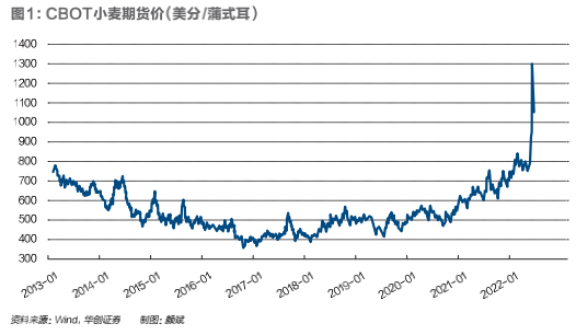 以小麦为例,2022年3月的第一周,芝加哥期货交易所的小麦价格涨幅一度超过70%,价格飙升至历史最高水平,超越2008年全球粮食危机时的价格高点。截至3月17日,芝加哥期货交易所小麦连续合约达到10.57美元/蒲式耳,一个月内上涨了32.6%,相比于2021年初涨了将近65%。