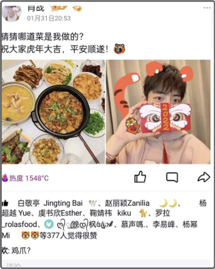 他们不舍昼夜,用从微博或IG搬运的美图更新状态,活跃得像个真号。评论点赞里更是星光熠熠,一方有图,八方点赞。