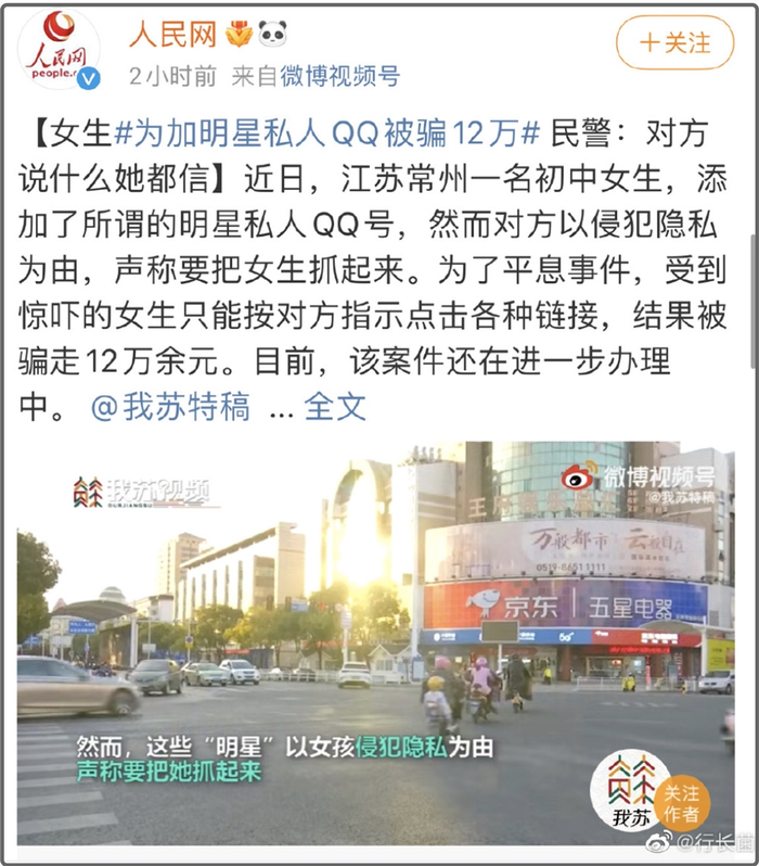 最近,看到一条“初中生加明星私人QQ被骗12万”的新闻不禁让我热泪盈眶。
